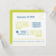 Cute Whimsical White Hearts with Modern Fonts and Bright Lime and Teal or Deep Aqua Modern White Whimsical Hearts on Back Wedding Invitation-