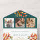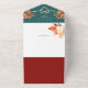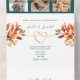 Announce your fall wedding in style with this elegant all-in-one invitation featuring rich teal and burnt orange autumn leaves, a gold rope heart motif, and space for three personal photos. Includes RSVP and return address sections, plus a QR code area for easy guest responses. Simply fold, seal, and send—no envelope required!