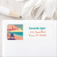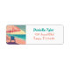 Teal and Peach Beach Abstract AI Art Sandy beach and umbrella return address labels.