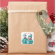 Adorable children, boy and girl, brother and sister in teal Merry Christmas stickers.