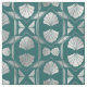 This beautiful Art Deco inspired design showcases silver shell shaped geometric elements on a teal green background.