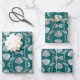 Teal and Silver Art Deco Shell Pattern Wrapping Paper Sheet