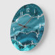 Teal and Silver Faux Glitter Marble Agate Large Clock
