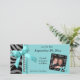 Teal ribbon and silver pearls with black and silver zebra stripes decorate this contemporary save the date announcement. Upload your own photo to the funky zebra frame to further personalize the look. There is plenty of customizable text on this trendy design to add your information. We also have this design in various colours along with matching stickers, invitations and address labels. Because the text is completely customizable, this eclectic design is perfect for almost any occasion! If at any time you need assistance customizing this product please feel free to contact us and we will be happy to help! As always, there is no additional charge for this personalized service.