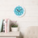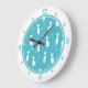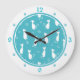 Teal and White Cats Pattern Large Clock