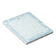 A light teal and white pattern of sitting silhouette cats is the background for this note pad. The centre portion has a semi-transparent overlay which allows the pattern to show through and also allows easy reading of your written message. At the top is your monogram in matching teal on a white oval, and there is a text field at the bottom for your website or telephone number. *Thanks to ThingsByLary for the pattern in this design.