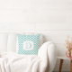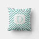 Teal and White Chevron Pattern Monogram Throw Pillow