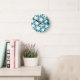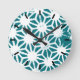 Teal and white geometric pattern round clock