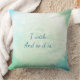 Pretty dandelion fluff 'I wish...And so it is ...' quote throw cushion. Theme - blue green nature plants natural positivity affirmation statement