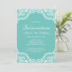 Teal and White Lace Quinceanera, Invitations. These simple and sweet quinceanera invitations are created with lace accents on a teal background that can be changed to any colour of your choice. Additional coordinating Quinceanera party supplies are available at Metro-Events Zazzle shop and Metro-Event.com.