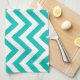 Teal and White Large Chevron ZigZag Pattern Kitchen Towel
