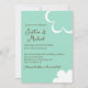 Teal and White Retro Flowers Wedding Invitation