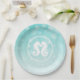 Pretty wedding or baby shower seahorses kissing white and teal bokeh paper plates.