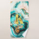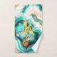 Teal Aqua Agate Golden Custom Modern Monogram Bath Towel Set