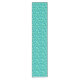 Table runner in a pattern of teal, turquoise, white and aqua semi-abstract sea shells on a turquoise background