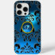 TEAL AQUA BLUE BLACK DAMASK GEMSTONE MONOGRAM Case-Mate iPhone CASE