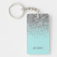 Teal Aqua Blue Silver Glitter Girly Monogram Name Keychain