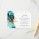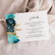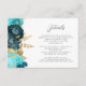 Teal Aqua Floral Gold Script Wedding Details Enclosure Card