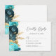 Teal Aqua Gold Floral Modern Script Wedding RSVP Card
