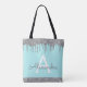 Teal Aqua Silver Glitter Sparkle Elegant Monogram Tote Bag