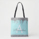 Teal Aqua Silver Glitter Sparkle Elegant Monogram Tote Bag