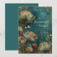 Step into a world of ethereal magic with this breathtaking celestial botanical design. The background is a rich, moody tapestry of deep emerald and teal watercolor, filled with shimmering stardust and soft, glowing bokeh lights that create a sense of infinite depth. Large, luminous Astrantia-inspired blooms take center stage, featuring intricate golden veining and delicate cream-to-peach centers that seem to radiate light from within. A sophisticated double-line gold border with decorative corners frames the scene, providing a touch of vintage luxury. The combination of deep nocturnal tones and brilliant gilded accents creates a romantic, otherworldly vibe perfect for a high-end celebration. This design is the premier choice for a starlit winter solstice ceremony, a moody celestial garden wedding, or a formal evening gala held under the stars. It is particularly well-suited for couples planning a "midnight garden" theme or a fantasy-inspired wedding where deep jewel tones and metallic accents are central to the decor. The atmospheric lighting in the design makes it a perfect match for candlelit receptions or events in architectural venues with dramatic lighting.