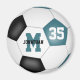 This soccer team colours magnet for boys or girls features the image of a realistic soccer ball, with some of the typically black panels recolored teal, upon which you can easily customize the athlete's name, monogram & jersey number - by katz_d_zynes