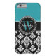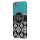 Teal, Black Damask Your Initial, Your Name Case-Mate iPhone Case
