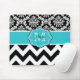 Show off your personal style in a fun way with this teal and black dot damask personalized mouse pad.