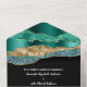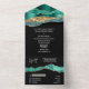 A beautiful all-in-one spring, summer, fall or winter invitation featuring faux sparkling gold and teal glitter. A combination of modern bold and calligraphy script font templates for your personalized wording appear on both sides of the invite and the bottom third has a tear off response card with personalized rsvp address for your guests to complete. These are ideal for any birthday; quinceanera or shimmer foil inspired wedding. The black background colour can also be changed to suit your colour scheme.