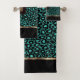 Teal & Black Leopard Pattern with Monogram Bath Towel Set