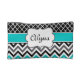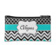 Teal Black Quatrefoil and Chevron Personalized Makeup Bag