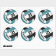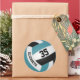 These custom volleyball themed round stickers for girls or boys feature a simple volleyball graphic with teal, black and white panels upon which you can customize the player's name & jersey number in a varsity letter style font - by katz_d_zynes