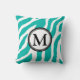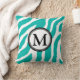 Elegant and modern turquoise teal aqua peacock blue, black and white cute animal print zebra pattern custom monogram decorative throw pillow. Fully customizable, add your own initial for a truly unique home decor item.