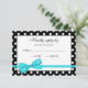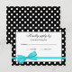 A stylish black polka dot pattern with a teal blue ribbon illustration is featured on this RSVP response card. Easily customize with your information. Designs are flat printed illustrations/graphics - NOT ACTUAL RIBBON.