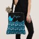Teal Blue And Black Trendy Leaves With Name Tote Bag
