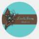 Teal Blue on Brown adorned with flower and leaves in the same colour. If you need to move the text, or change the size, font, or colour, click Customize It. email shutterbug600@yahoo.com There is a matching save the date card available: