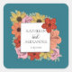 Add the perfect finishing touch to wedding invitation mailings with these envelope seals that are ready to be personalized with your names and wedding date. It features a bright and colourful collection of flowers against a bold, teal blue background. These stickers are also perfect for decorating party favours.