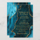 Teal Blue and Gold Agate Marble Wedding Invitation