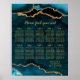 Welcome guests in style with this teal blue and gold agate marble wedding seating chart, designed to make a striking statement at your reception. Rich jewel-toned blues, organic stone-inspired patterns, and luminous gold accents create a refined and dramatic display ideal for fall or winter weddings. The deep ocean palette paired with metallic gold detailing complements elegant, modern, and glamorous celebrations while enhancing your décor. This seating chart is formatted for 10 tables and can be fully customized to accommodate additional tables, guest counts, and layout preferences, ensuring a seamless fit for your wedding day.