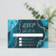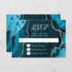Make a bold and elegant first impression with this teal blue and silver agate marble RSVP card, featuring rich jewel tones, organic stone textures, and shimmering silver accents perfect for fall and winter celebrations. The deep ocean hues paired with metallic silver detailing create a dramatic yet refined look ideal for a wedding RSVP, birthday RSVP, or Sweet Sixteen RSVP with a formal, modern, or glamorous aesthetic. Inspired by natural agate and geode patterns, this luxurious design coordinates beautifully with upscale seasonal events and is fully customizable to match your details, adding timeless sophistication to autumn and winter celebrations alike.