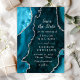 Teal Blue and Silver Agate Marble Save The Date Invitation
