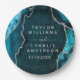 Teal Blue and Silver Agate Marble Wedding Paper Plate
