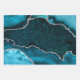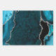 Teal Blue and Silver Faux Glitter Agate Wrapping Paper Sheet