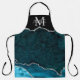 This apron features an elegant and glamourous agate marble background with geode gemstone detailing and faux silver glitter accents. The monogram combines handwritten script and modern sans serif fonts for a classy and sophisticated look. This will make the ideal gift as it can be customized with a name and initial. The deep teal blue hues make it perfect for autumn fall and winter.