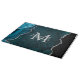 This cutting board features an elegant and glamourous agate marble background with geode gemstone detailing and faux silver glitter accents. The monogram combines handwritten script and modern sans serif fonts for a classy and sophisticated look. This will make the ideal gift as it can be customized with a name and initial. The deep teal blue hues make it perfect for autumn fall and winter.
