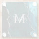 This coaster features an elegant and glamourous agate marble background with geode gemstone detailing and faux silver glitter accents. The monogram combines handwritten script and modern sans serif fonts for a classy and sophisticated look. This will make the ideal gift as it can be customized with a name and initial. The deep teal blue hues make it perfect for autumn fall and winter.