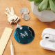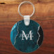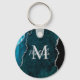This keychain features an elegant and glamourous agate marble background with geode gemstone detailing and faux silver glitter accents. The monogram combines handwritten script and modern sans serif fonts for a classy and sophisticated look. This will make the ideal gift as it can be customized with a name and initial. The deep teal blue hues make it perfect for autumn fall and winter.