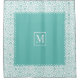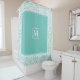 Teal blue and white damask pattern and square with scalloped borders shower curtain. It showcases a light teal blue square with scalloped borders in the centre with a damask border and your monogram. You can personalize it with your family name and monogram.