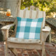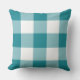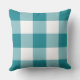 Teal Blue and White Gingham Plaid Pattern Outdoor Pillow